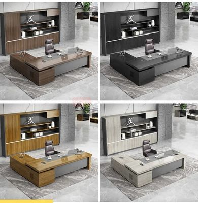 Detail Information | L shape office desk with long size cabinet, Including one wire box, V shape aluminum handle, soft clossing hinge |